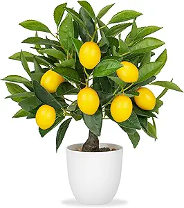 Artificial Lemons Citrus Tree with White Pot Faux Plants Indoor for Home,Office, Living Room Table, Desk