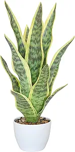 Fake Sansevieria Floor Plant Real Looking with White Planter for Centerpiece Home Decor (Yellow&Green).